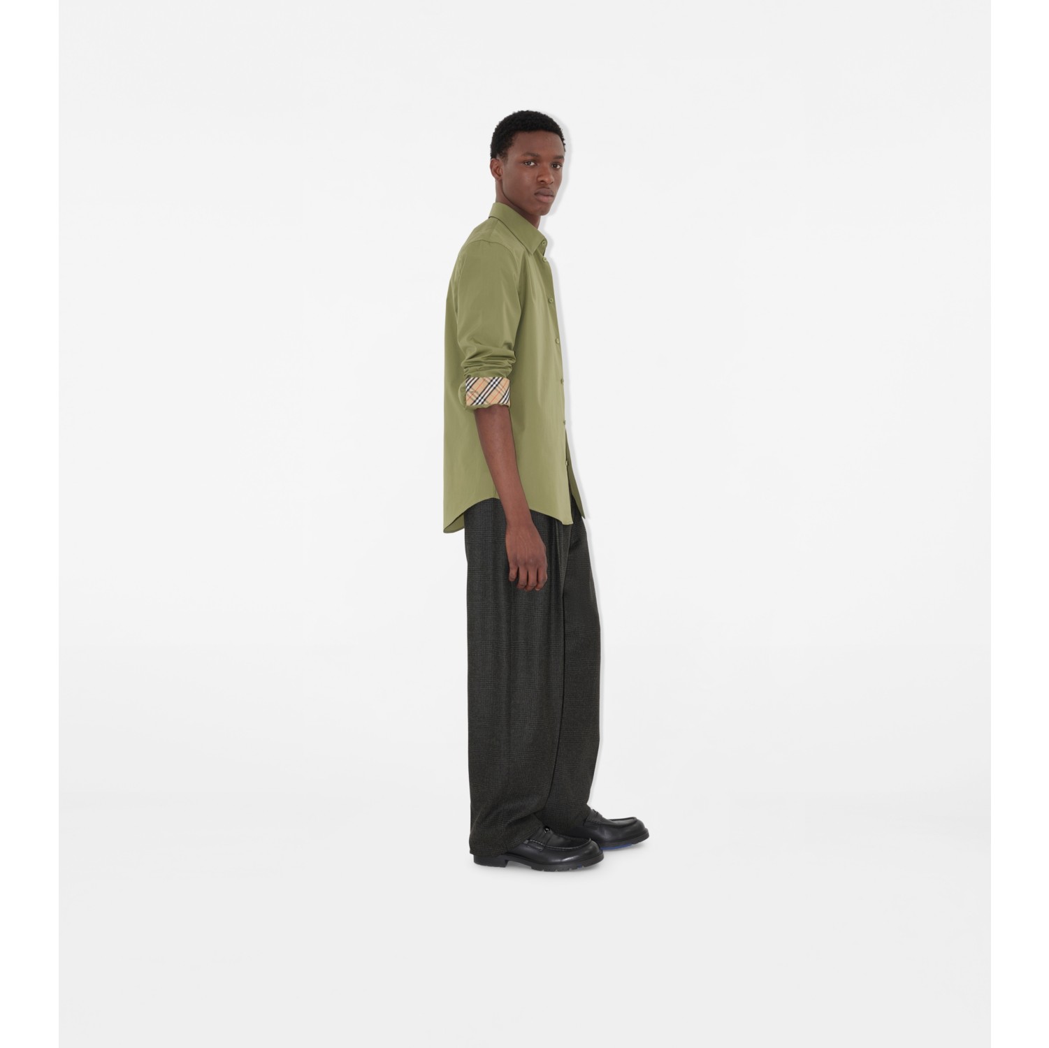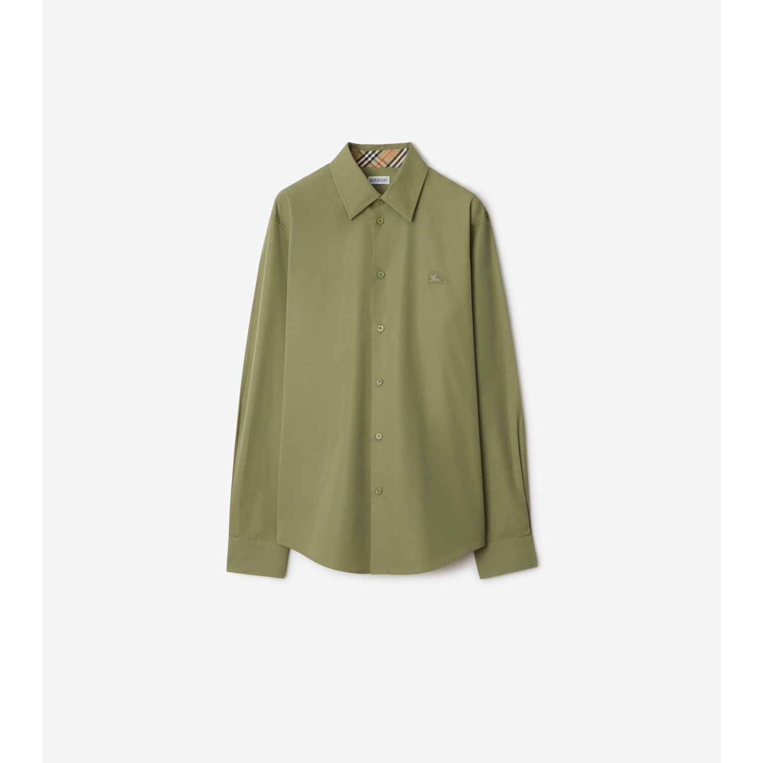 A long-sleeved shirt made from cotton poplin woven in Italy, lined with Burberry Check at the collar and cuffs. The style is cut to a slim fit and embroidered with a tonal Equestrian Knight Design.